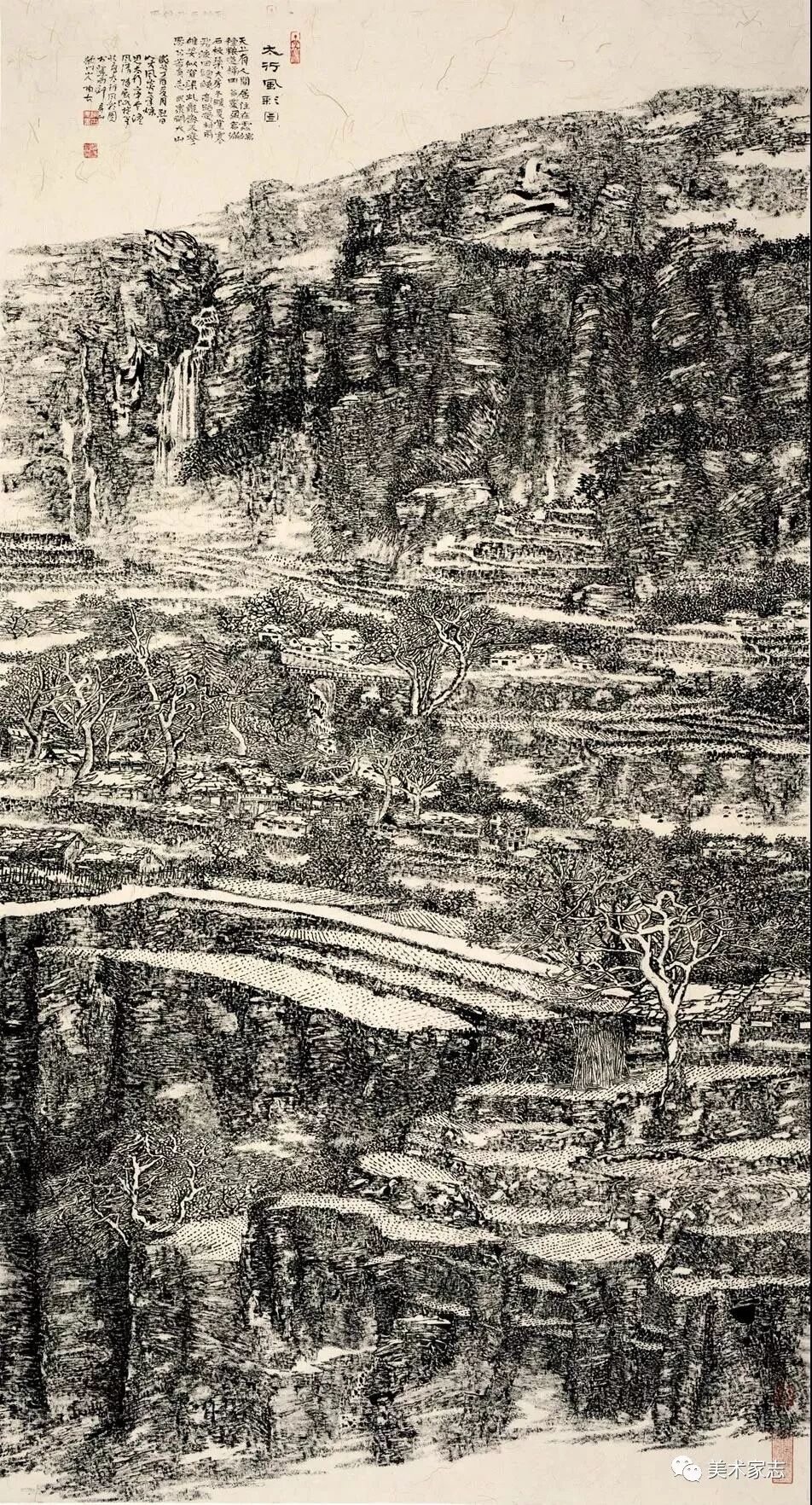 《太行风采图》 焦墨纸本 180X90cm 2018