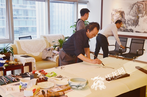 华龙网4月16日17时17分讯(记者 姜连贵)4月15日,德镁基金邀请了王江平、张珍容、 柴林、钟利富等20名书画家在江北嘴开展了文化交流活动,书画结缘,以文会友,相互学习,共同发展。